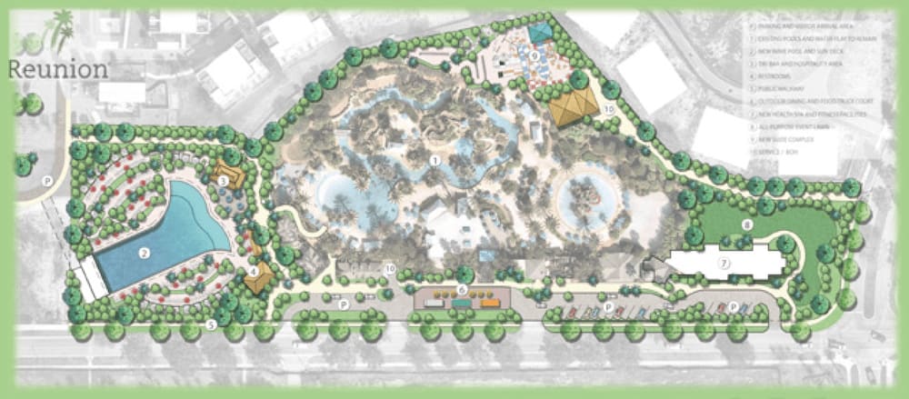 Spectrum+, a modern 296-unit condo development specially designed for vacation rentals, is designated for the land surrounding the Reunion Water Park. The first condos were completed in 2020 with the neighborhood due to be completed by 2024. New amenities include a clubhouse, fitness center, and an expansive community pool.