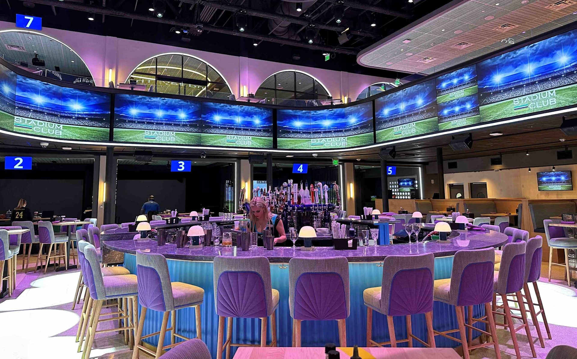Sports & Social, located at Pointe Orlando on International Drive, brings together top-rated and industry-leading sports gaming platforms with an immersive sports entertainment experience. Sports fans can watch multiple games and sporting events on a state-of-the-art LED 52-foot media wall and enjoy live fan-cams, competitions, games and electrifying sound and light effects.