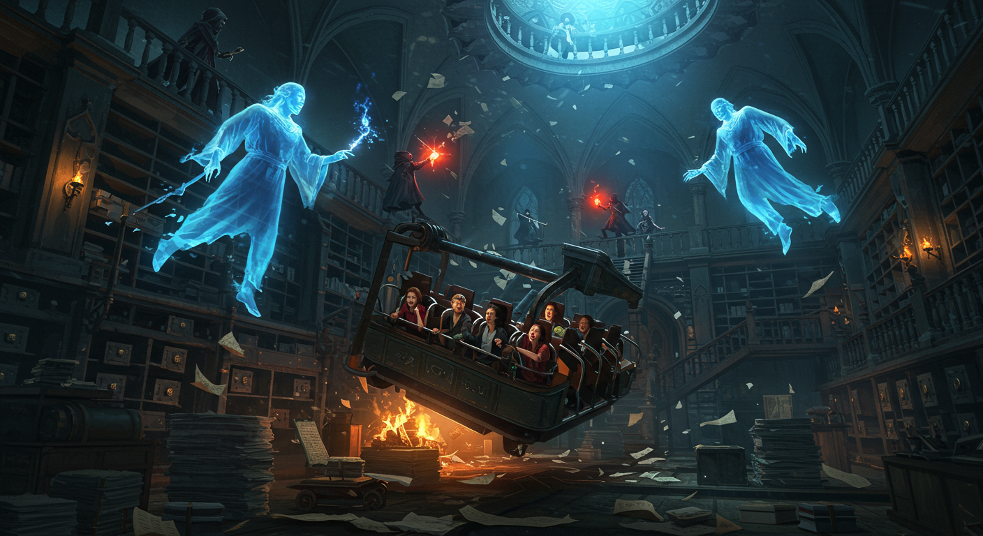 With its unique combination of massive environments, powerful storytelling and first-of-its-kind ride technology, Harry Potter and the Battle at the Ministry builds upon the historic theme park innovation Universal is known for – and will be one of its most impressive attractions to date. The adventure begins when guests travel by Métro-Floo – a unique mode of wizarding transit inspired by the iconic Floo Network seen in the films – to journey from wizarding Paris to the British Ministry of Magic for the long-awaited trial of the infamous Dolores Umbridge. Upon arrival, guests will enter the Ministry’s jaw-dropping grand atrium and venture through other departments before boarding magical, omnidirectional lifts to watch the trial take place…until Umbridge attempts to escape. Guests then join Harry Potter, Ron Weasley, Hermione Granger and a house-elf named Higgledy in a thrilling chase that will propel them up, down, forward, backward, sideways and more throughout the Ministry as they try to capture Umbridge – all while dodging attacks from Death Eaters, rampaging creatures and more along the way.
