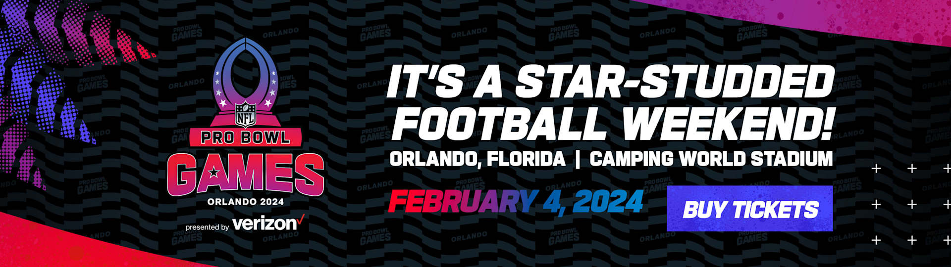 The Pro Bowl Games' return to Orlando signifies a renewed commitment to delivering an unforgettable experience for both players and fans alike. Tickets for the Sunday, February 4, AFC vs NFC flag football championships are on sale now! Buy tickets, which start as low as $25, at ProBowl.com/Tickets to experience the excitement live at Camping World Stadium.